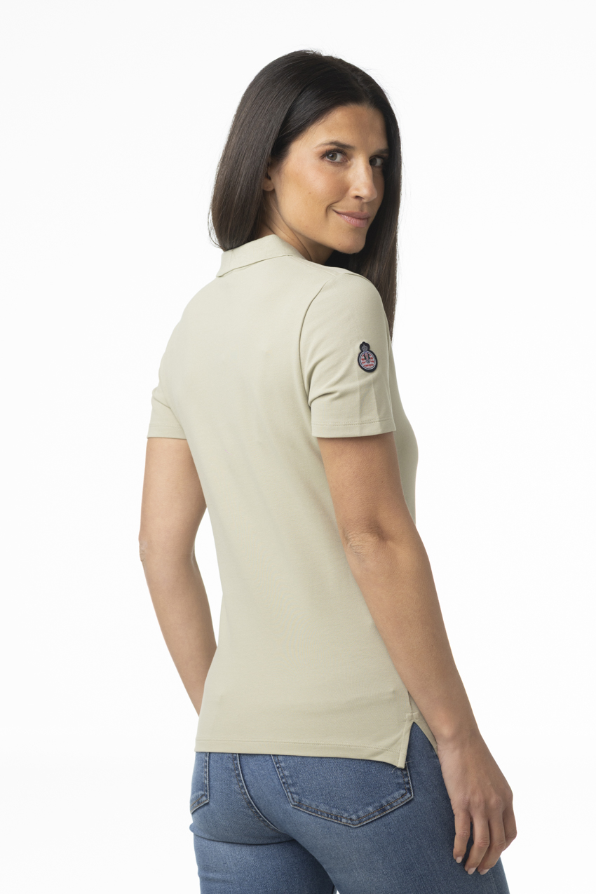 Polo from the Automobile Club de Monaco collection in collaboration with GANT, featuring an elegant and minimalist style. Presented in a soft and natural beige color, it brings a touch of modernity and understated refinement to the women’s wardrobe.
