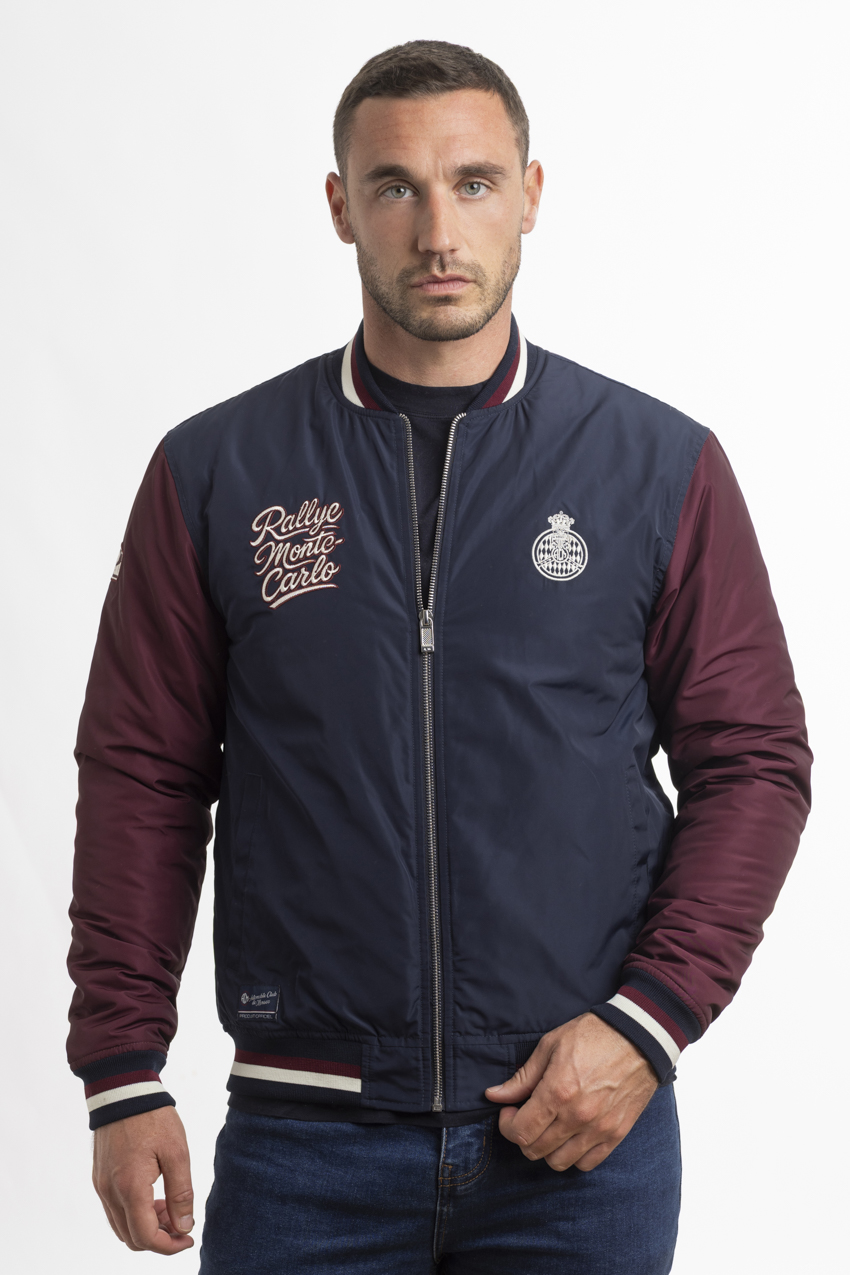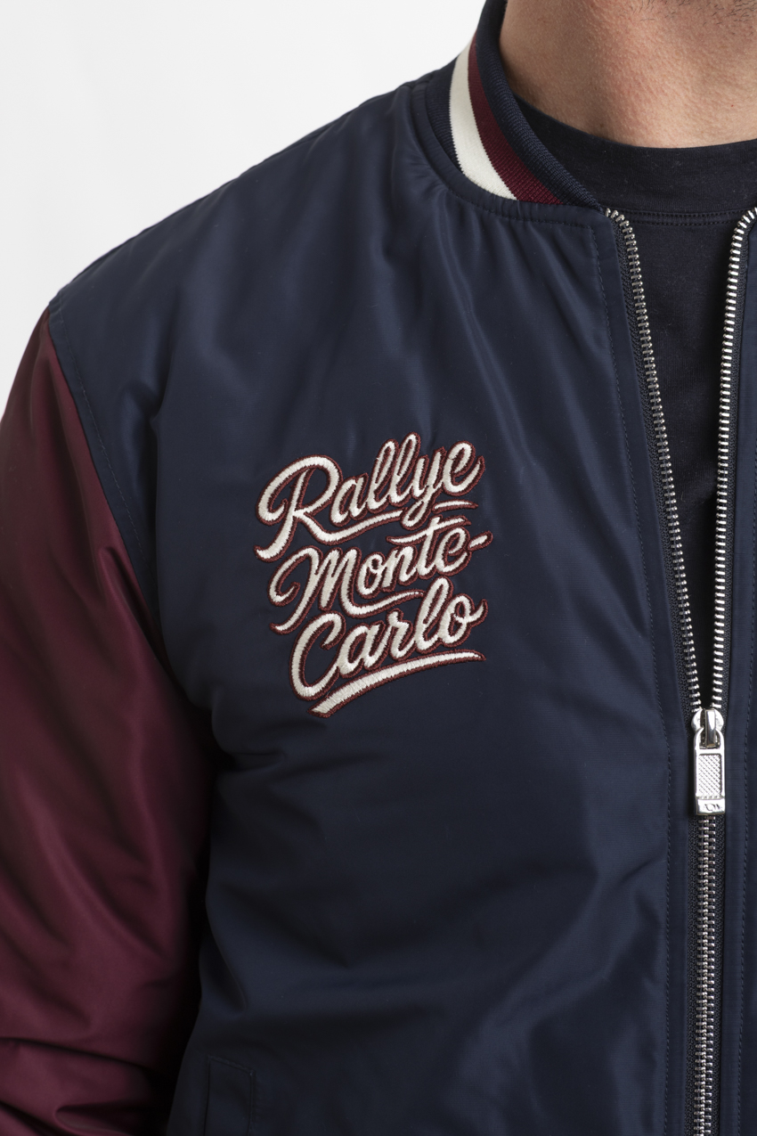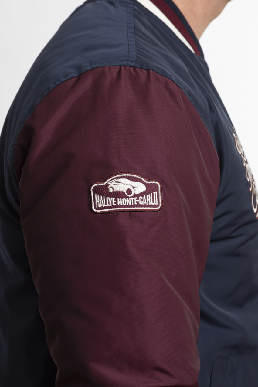Exclusive navy blue and burgundy Rallye Monte‑Carlo bomber.