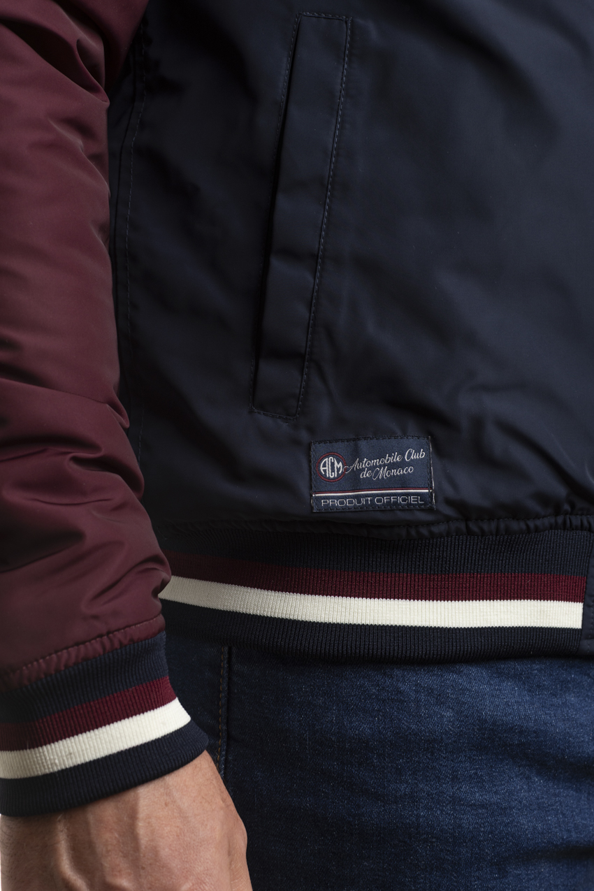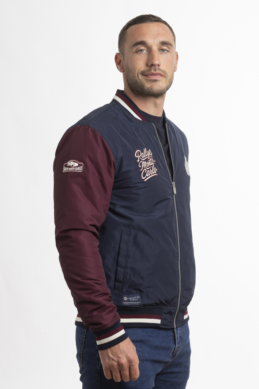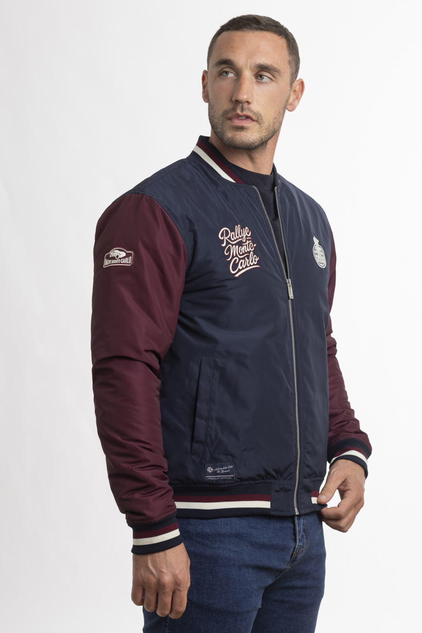 Exclusive navy blue and burgundy Rallye Monte‑Carlo bomber.