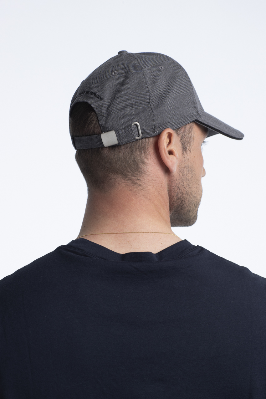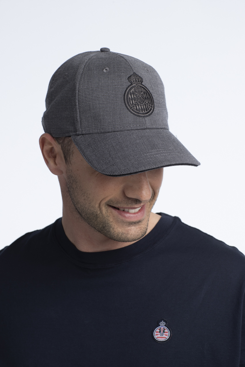 This grey Prince of Wales check cap reinterprets classic elegance with a contemporary touch. Its subtly textured fabric is enhanced by a tone-on-tone embroidery of the Automobile Club de Monaco emblem, offering a look that is both understated and refined. Comfortable and easy to adjust, it can be worn daily or at sporting events. A sophisticated accessory to complete a chic, confident urban style.