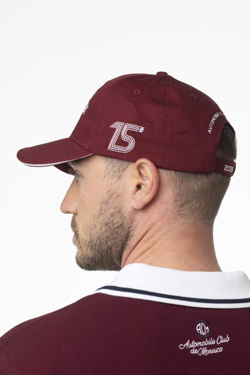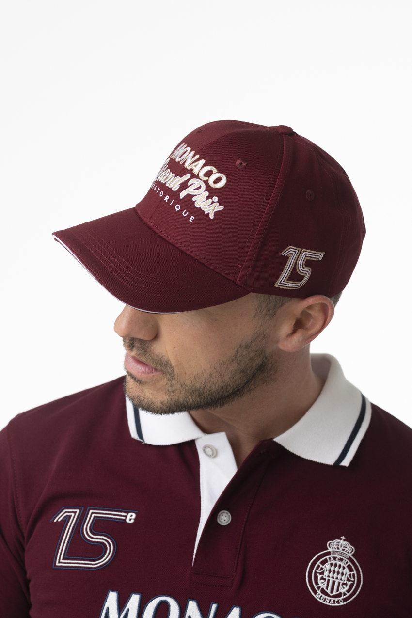 Cap from the Monaco Grand Prix Historique collection, with an elegant, authentic racing style. Its deep bordeaux color is enhanced by contrasting embroidery at the front “Monaco Grand Prix Historique” and on the side with the marking “15”.