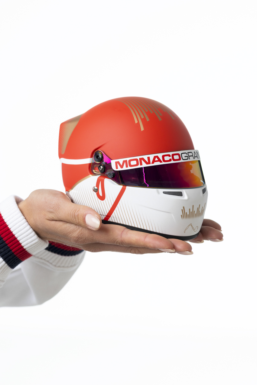 Mini driver helmet inspired by the Monaco Grand Prix, featuring a modern and collectible design. Crafted with a glossy red finish and white and gold details, it reflects the circuit’s graphic codes with dynamic lines and the iconic track layout. The mirrored visor adds a technical and elegant touch, while the “Monaco Grand Prix” inscriptions reinforce its racing identity. Compact and decorative, this item is ideal for motorsport enthusiasts and collectors.