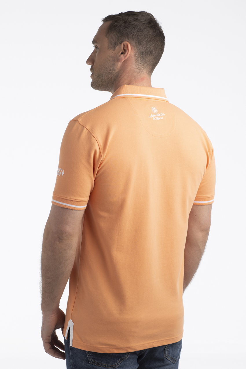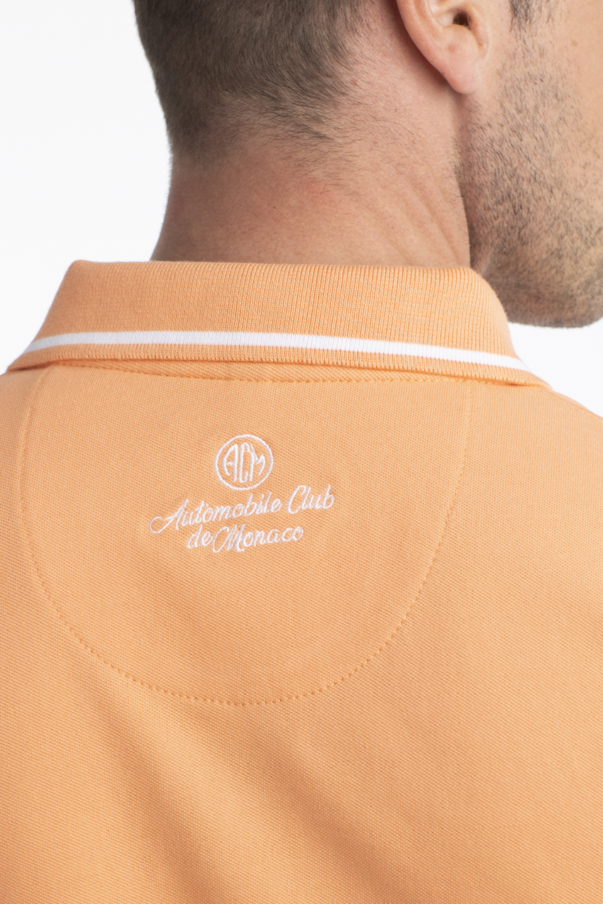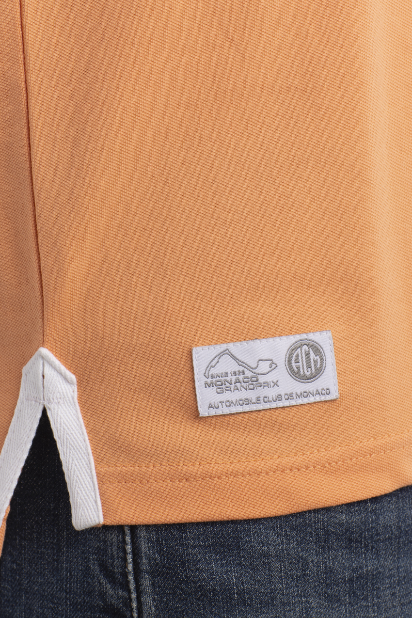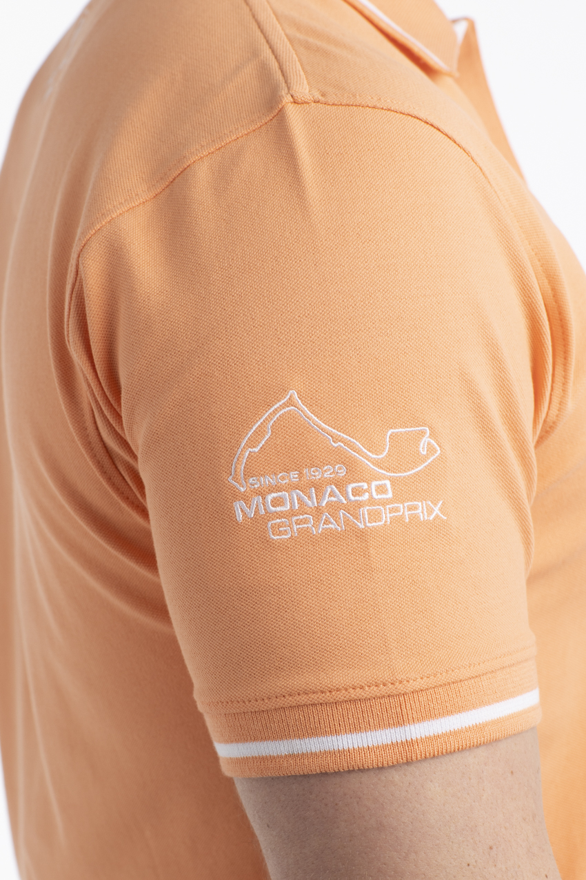 Exclusive orange cotton polo shirt adorned with embroideries of the 82nd edition of the Monaco Grand Prix