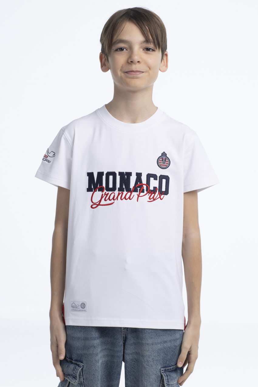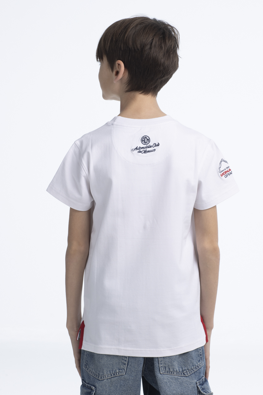 Adorned with the Automobile Club de Monaco crest in high definition on the heart side, this t-shirt also features an embroidered “Monaco Grand Prix” inscription in the center. On the back, an embroidered inscription “Automobile Club de Monaco” adds an elegant, energetic touch, perfectly suited to dynamic kids.