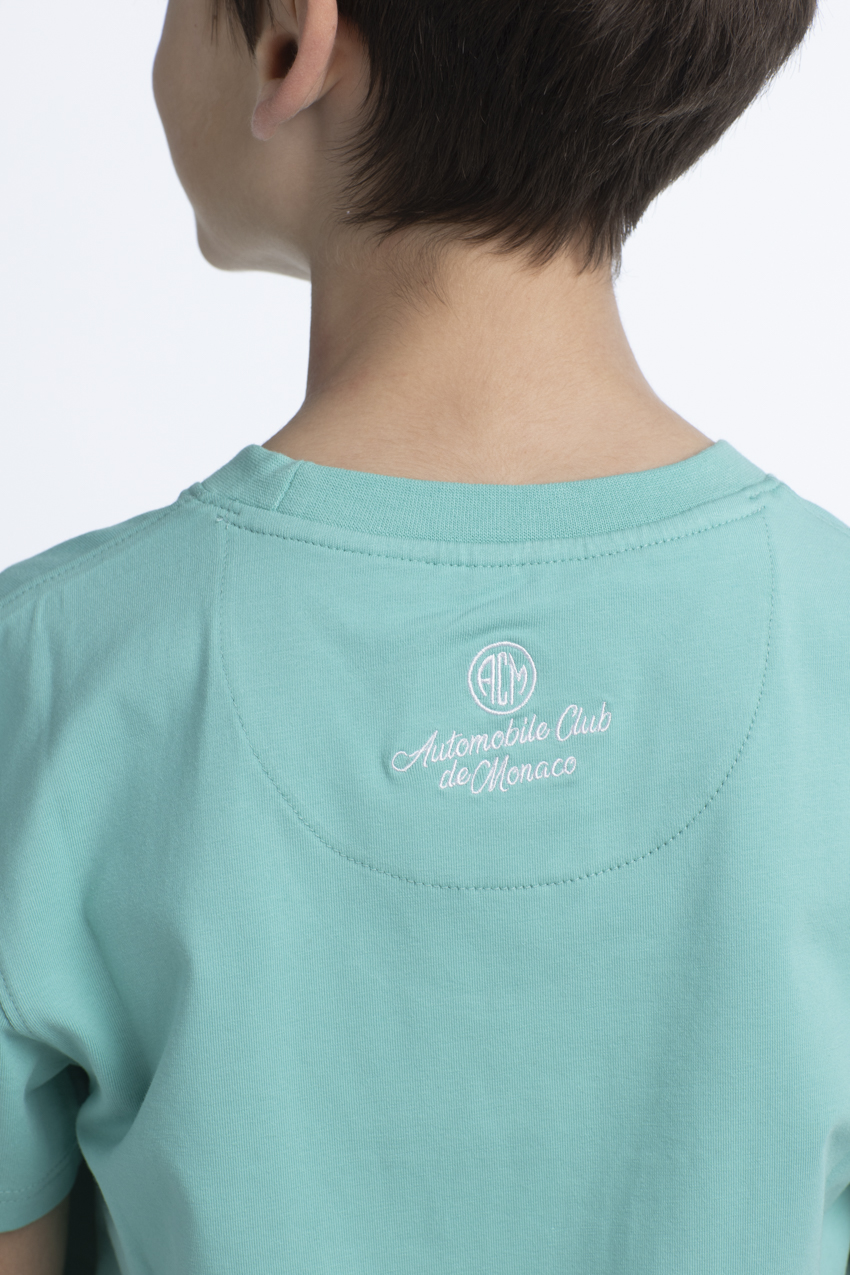 Adorned with the Automobile Club de Monaco crest in high definition on the heart side, this t-shirt also features an embroidered “Monaco Grand Prix” inscription in the center. On the back, an embroidered inscription “Automobile Club de Monaco” adds an elegant, energetic touch, perfectly suited to dynamic kids.