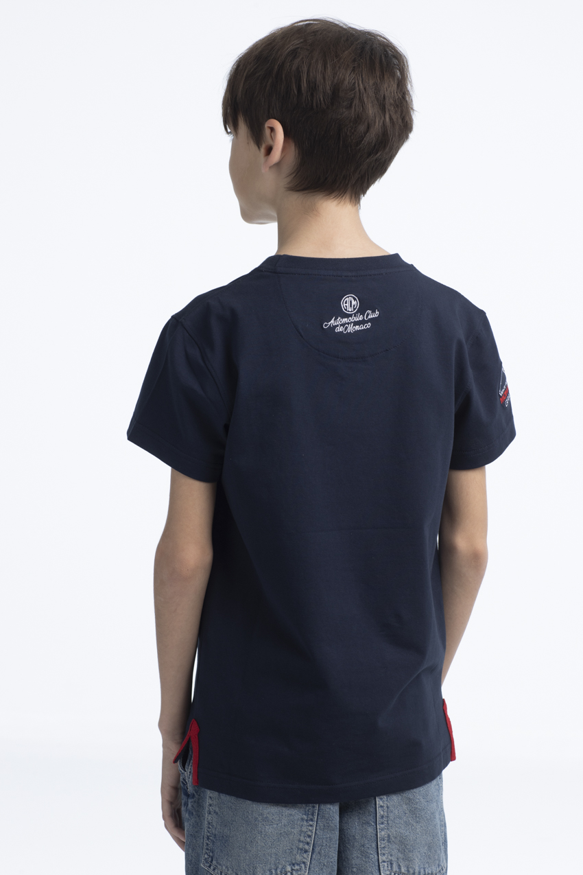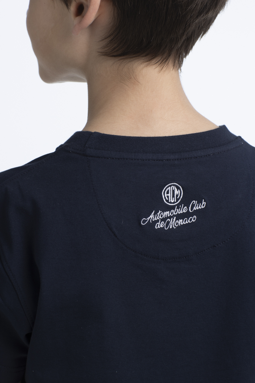 Adorned with the Automobile Club de Monaco crest in high definition on the heart side, this t-shirt also features an embroidered “Monaco Grand Prix” inscription in the center. On the back, an embroidered inscription “Automobile Club de Monaco” adds an elegant, energetic touch, perfectly suited to dynamic kids.