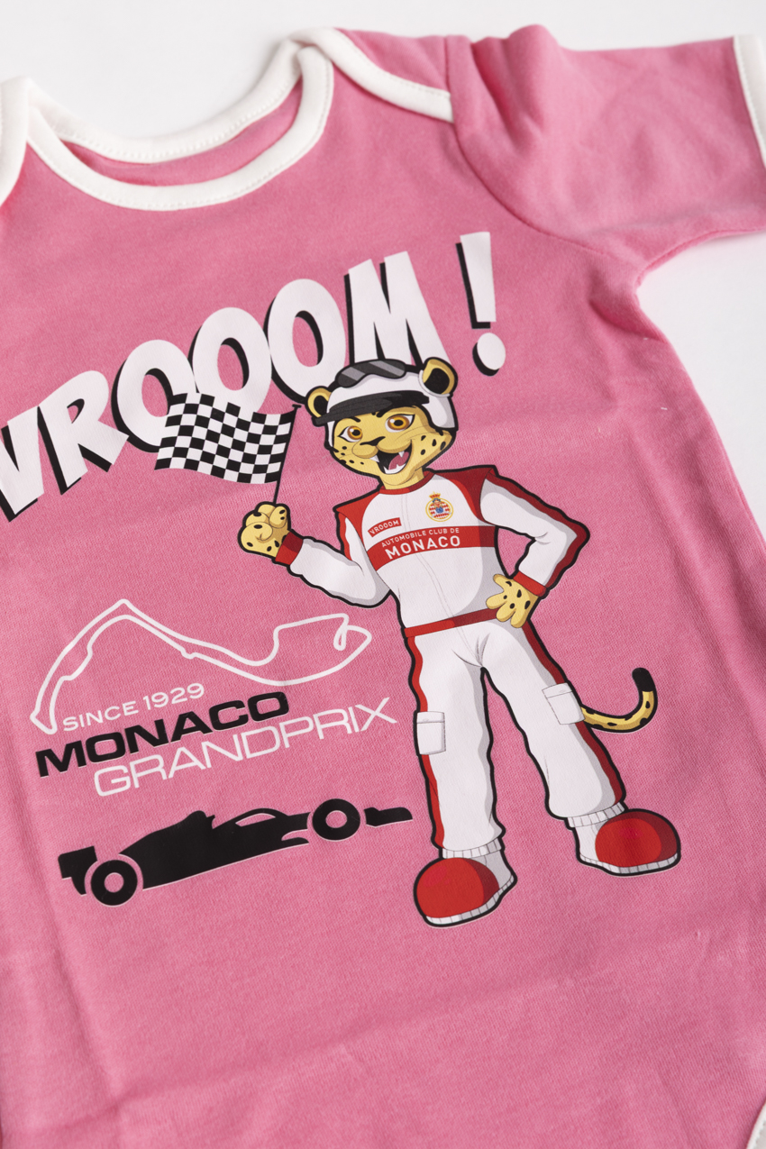 Body fille « Automobile Club de Monaco ». Confectionné en 100 % coton, ce body rose offre douceur, confort et mobilité pour accompagner les tout-petits au quotidien. Son design ludique met en avant l’univers du Monaco Grand Prix avec des illustrations dynamiques et des finitions contrastées blanches.