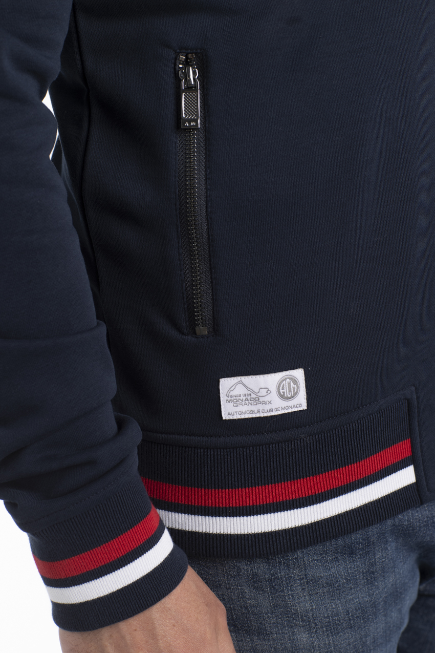 Le cardigan allie un style dynamique et sportif. Ce cardigan à la coupe courte, confectionné en molleton, est doté d’un col montant, d’une fermeture zippée centrale en métal avec une tirette personnalisée ainsi que de deux poches latérales avec fermeture zippée. Il est orné de l’écusson de l’Automobile Club de Monaco tissé en haute définition côté cœur et d’une broderie exclusive du Grand Prix de Monaco de l’autre côté. Vous trouverez également une broderie de l’ACM en bas du cou à l’arrière de la veste. Ajouté à cela, une étiquette officielle tissée à l’intérieur. Les finitions soignées de ce cardigan se traduisent par des coutures intérieures recouvertes d’un logo ruban ainsi que des finitions résistantes et qualitatives aux niveau des poignets et de la taille bord-côtes. Doté d’une coupe droite, ce cardigan s’associera à la perfection à un jean ou un bermuda pour un look sport-chic décontracté.