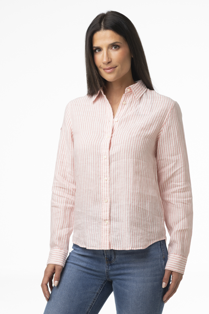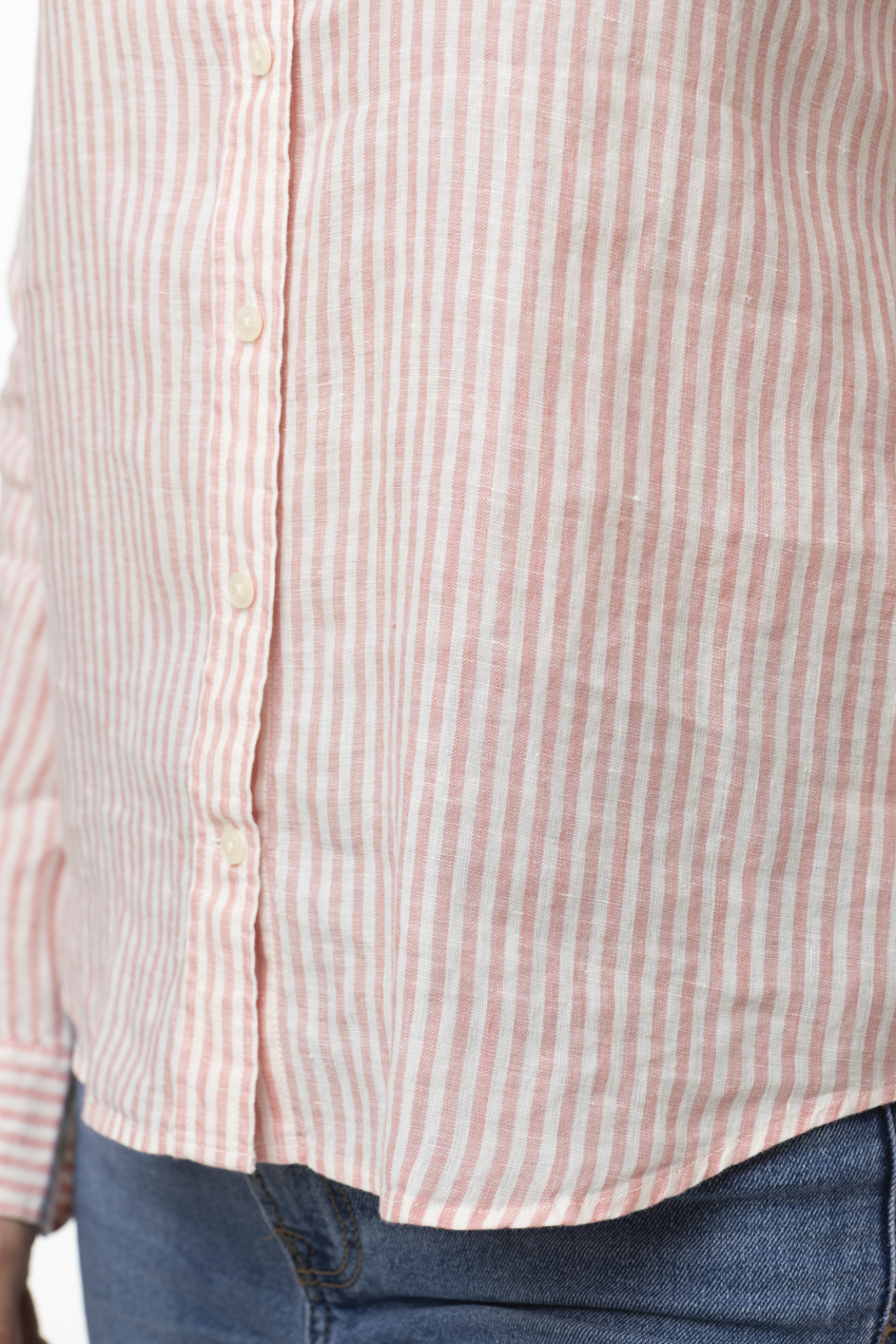 Son motif à fines rayures rose et blanc apporte une touche féminine et lumineuse, tout en restant facile à associer. Dotée d’une coupe classique avec col chemise, fermeture boutonnée et manches longues, elle s’adapte aussi bien à un look casual avec un jean qu’à une tenue plus habillée. Sa matière naturelle et son tombé fluide assurent un confort optimal tout au long de la journée.