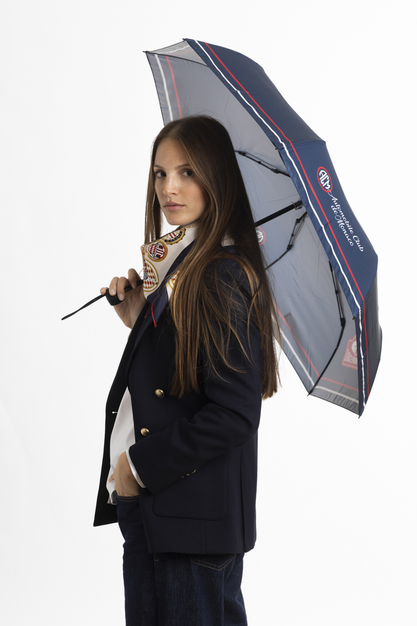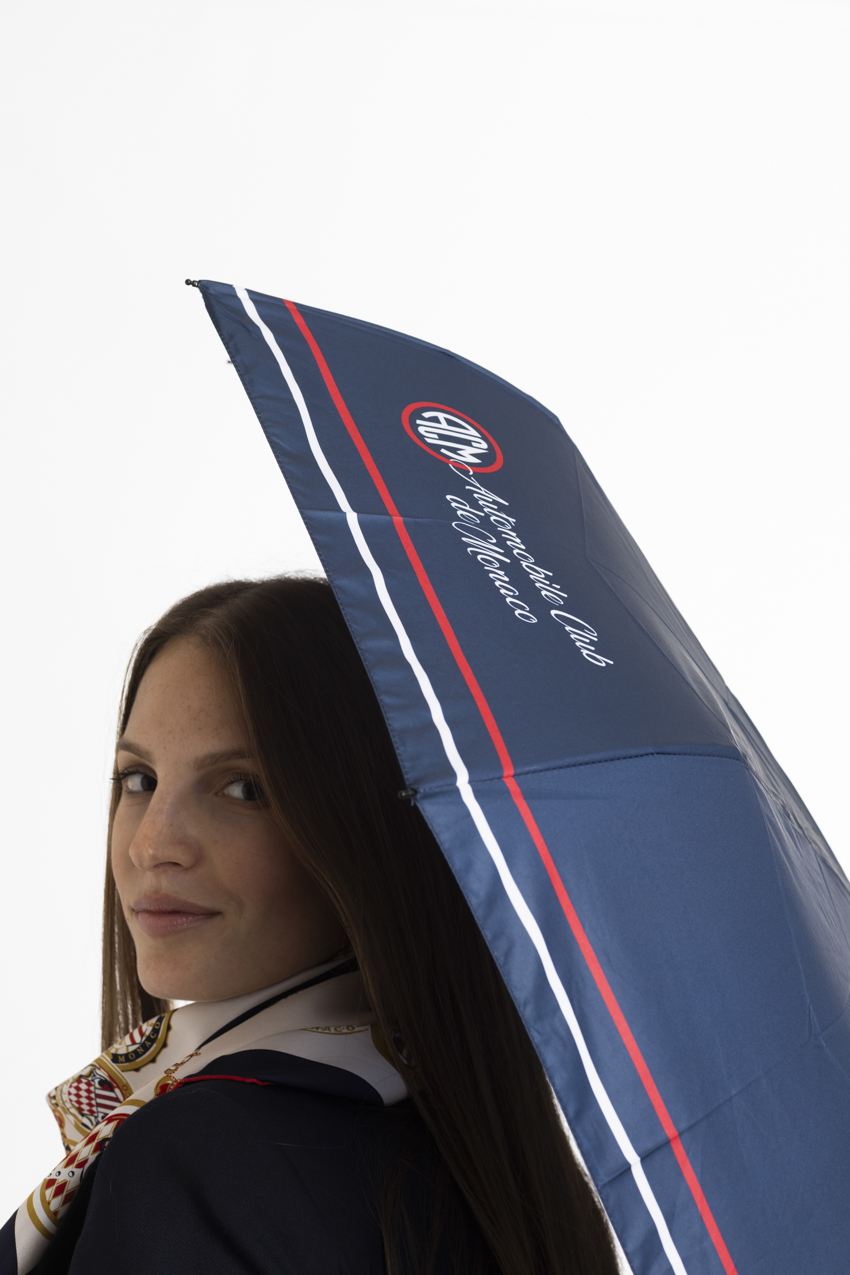 Mini parapluie “Rallye Monte-Carlo”. Compact et élégant, ce mini parapluie aux couleurs officielles du Rallye Monte-Carlo allie praticité et style. Sa toile en 100 % polyester arbore les emblèmes de l’ACM et du Rallye, avec un design bleu marine rehaussé de liserés rouge et blanc. Facile à transporter grâce à son format pliable, il offre une protection efficace tout en affirmant ton attachement à l’univers mythique du rallye monégasque.