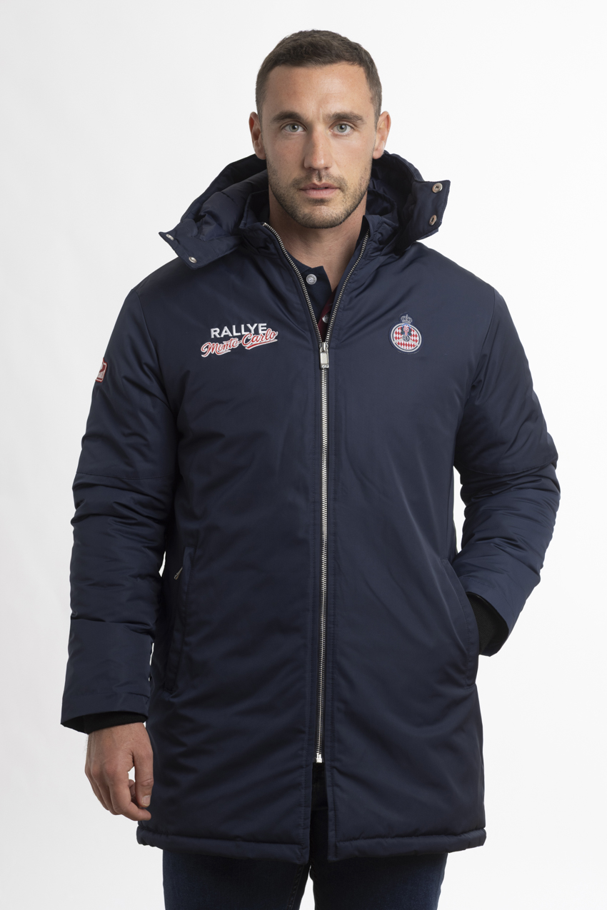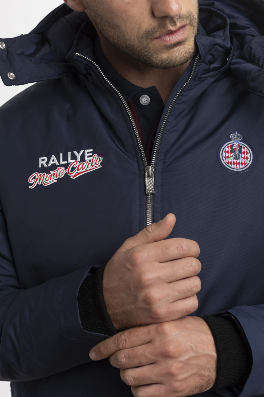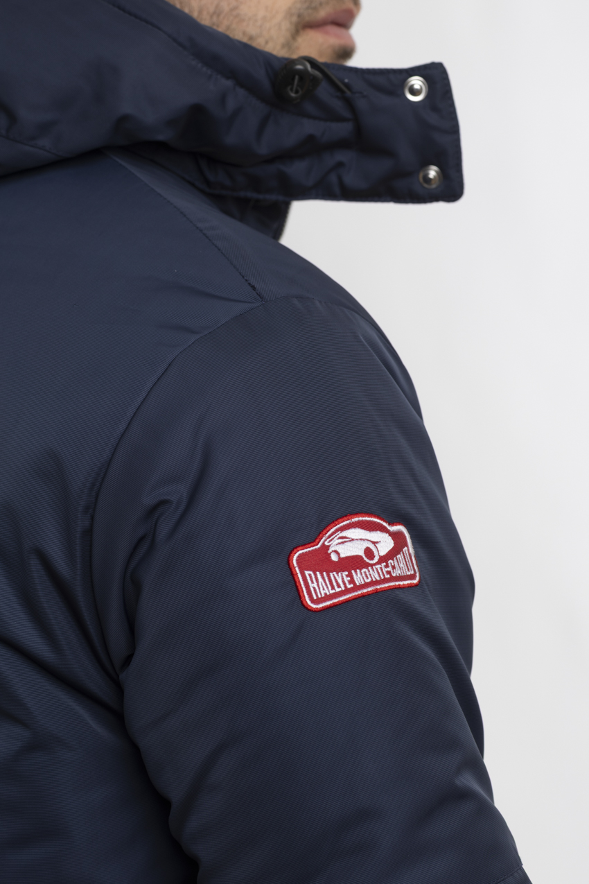 Parka exclusive bleu marine, ornée de broderies du Rallye Monte-Carlo.