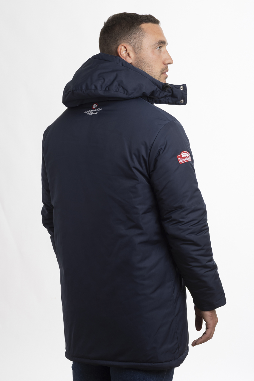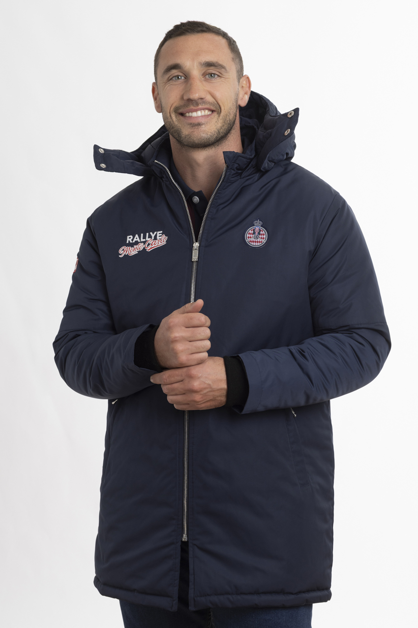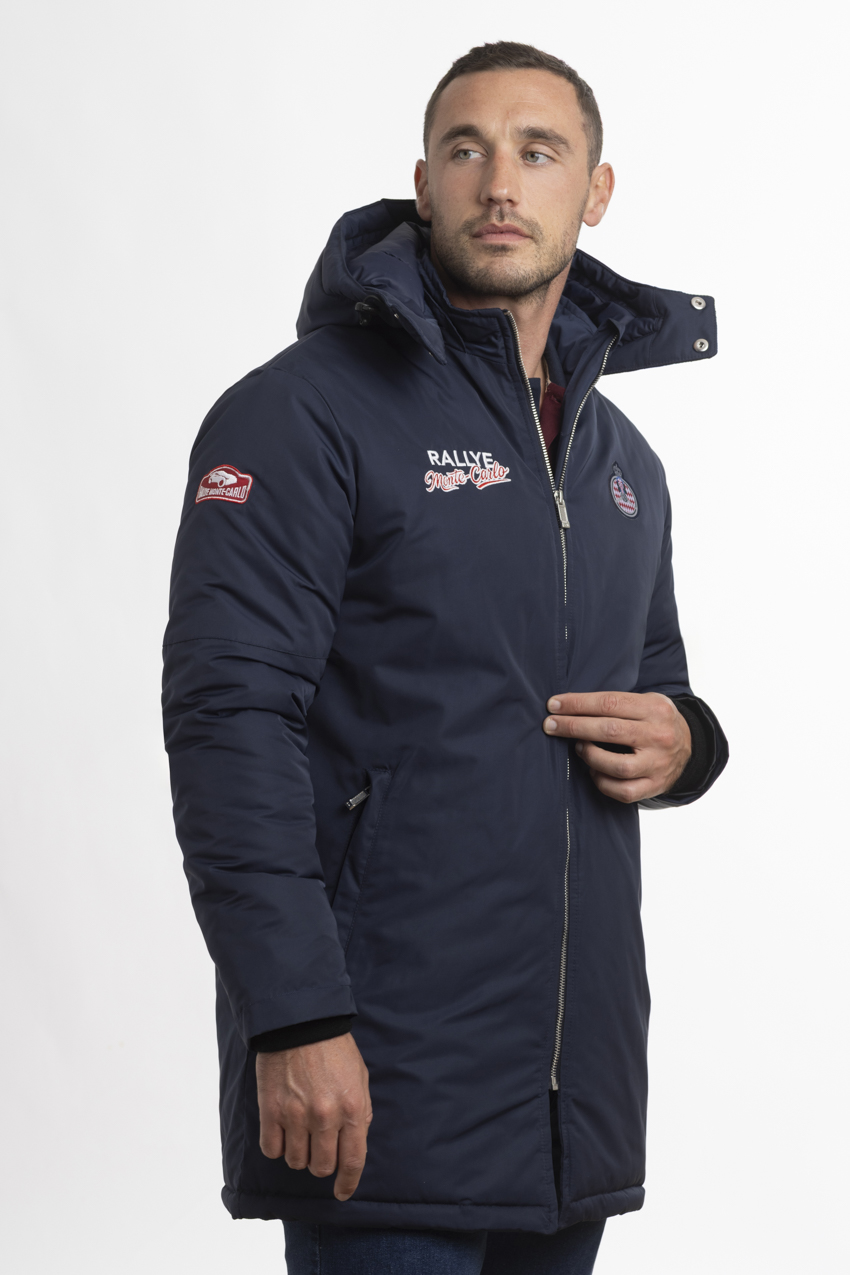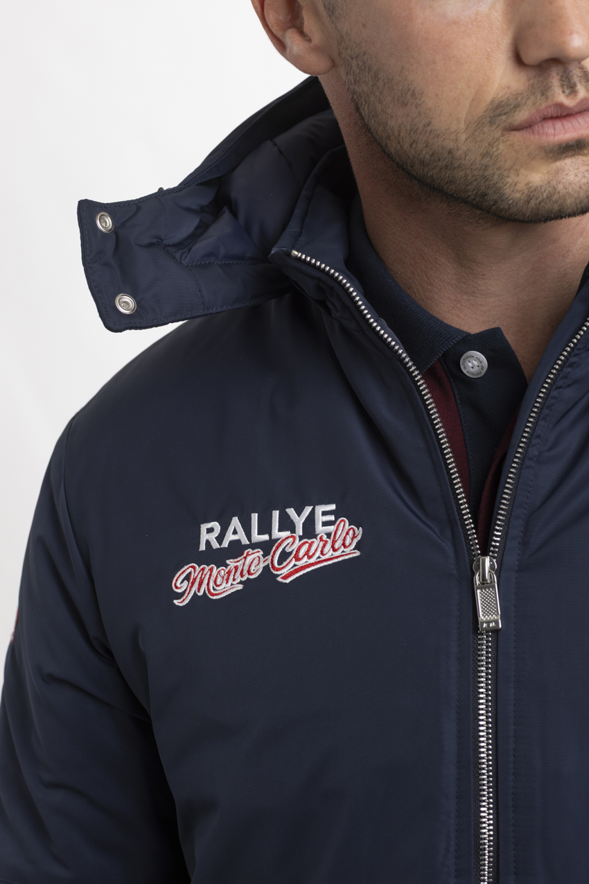 Parka exclusive bleu marine, ornée de broderies du Rallye Monte-Carlo.