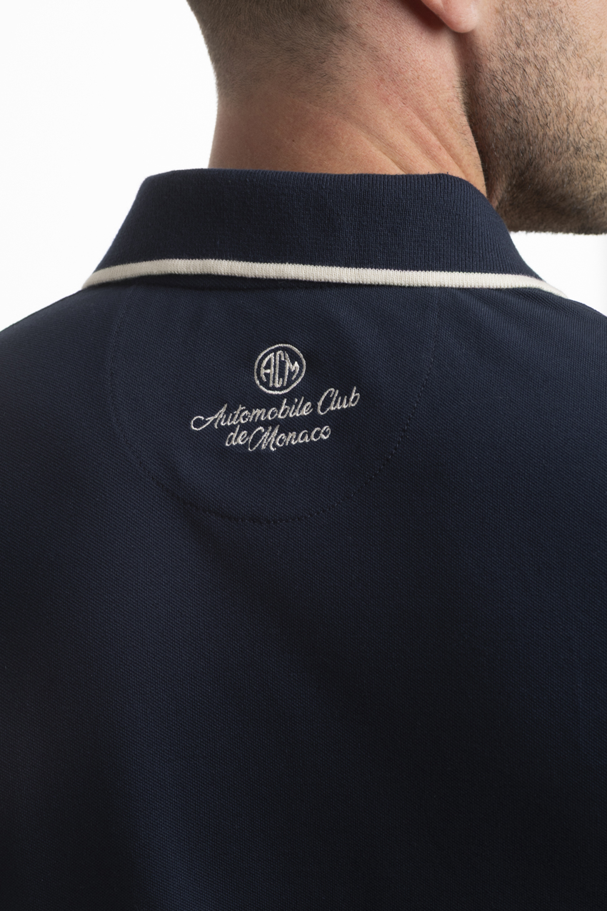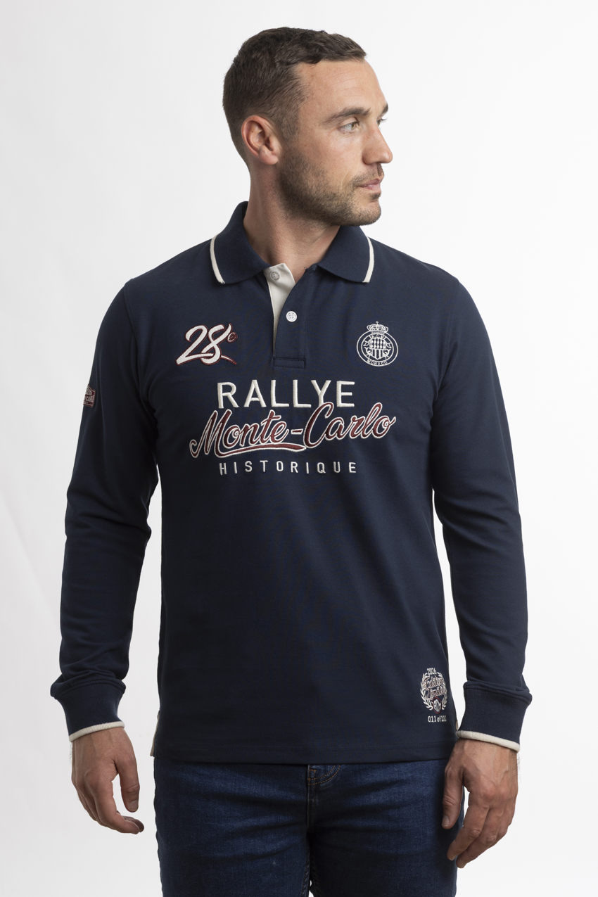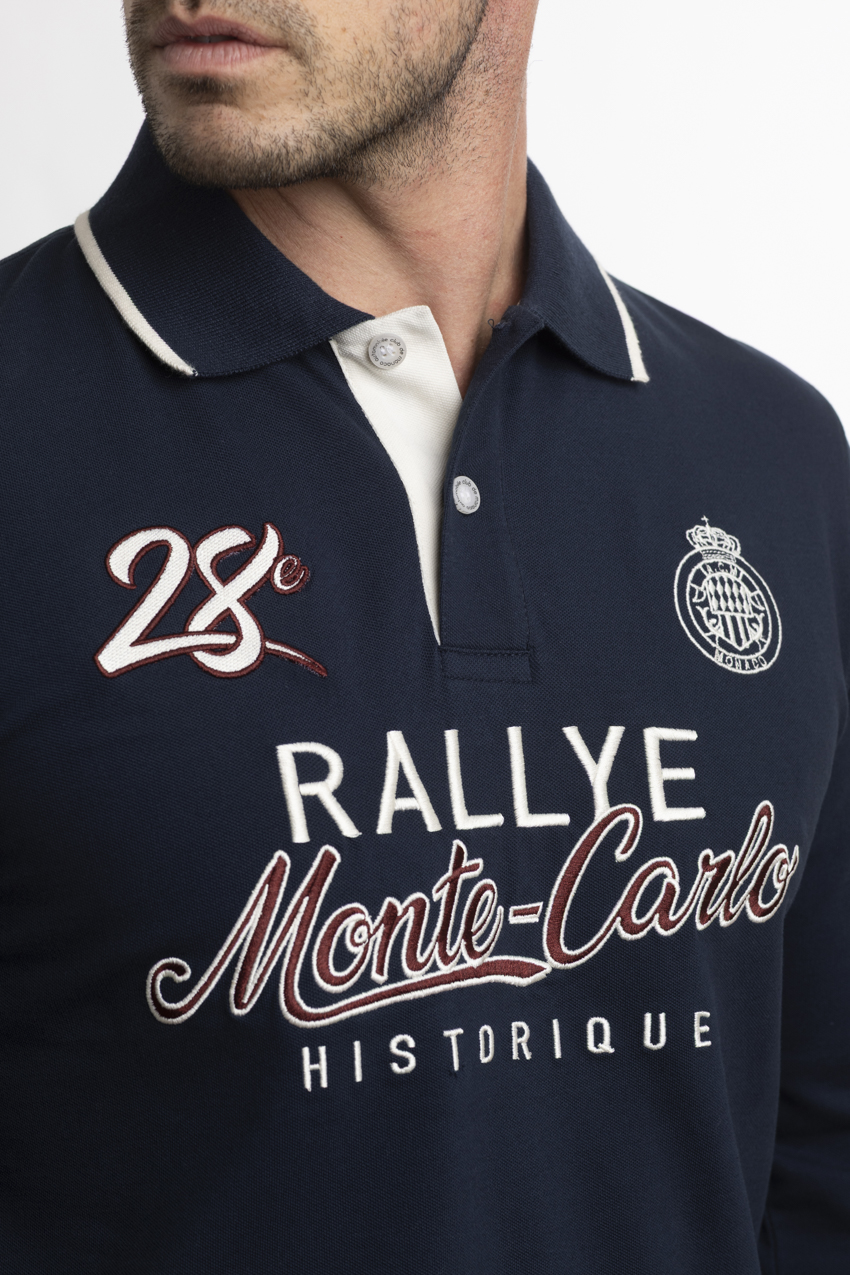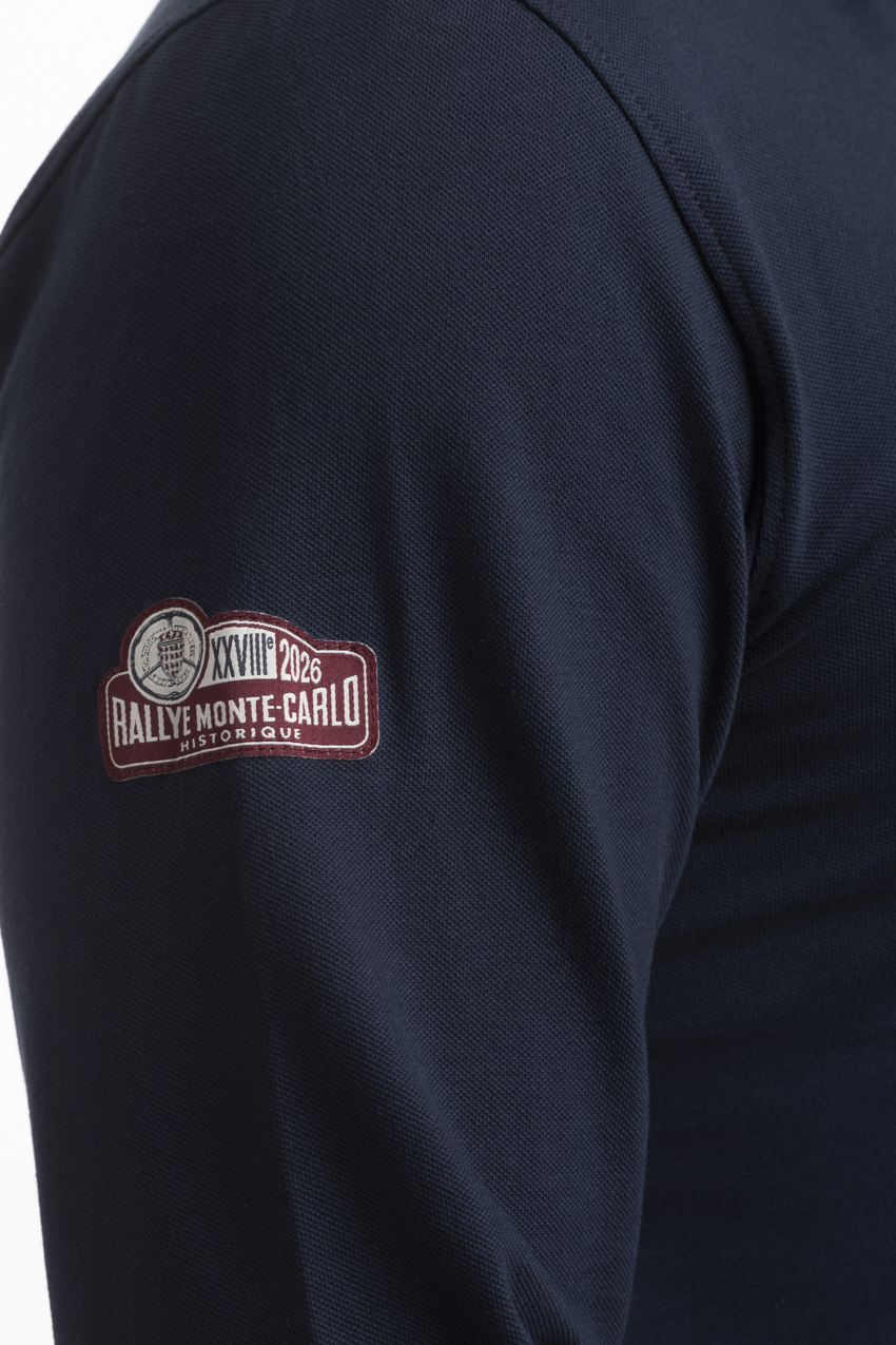 Polo bleu marine exclusif en coton orné de broderies de la 28e édition du Rallye Monte-Carlo Historique