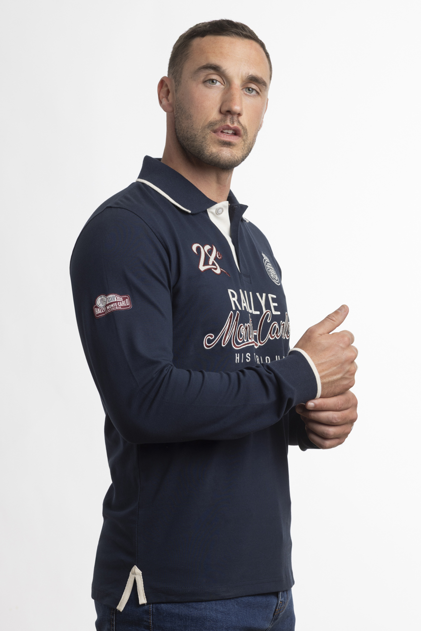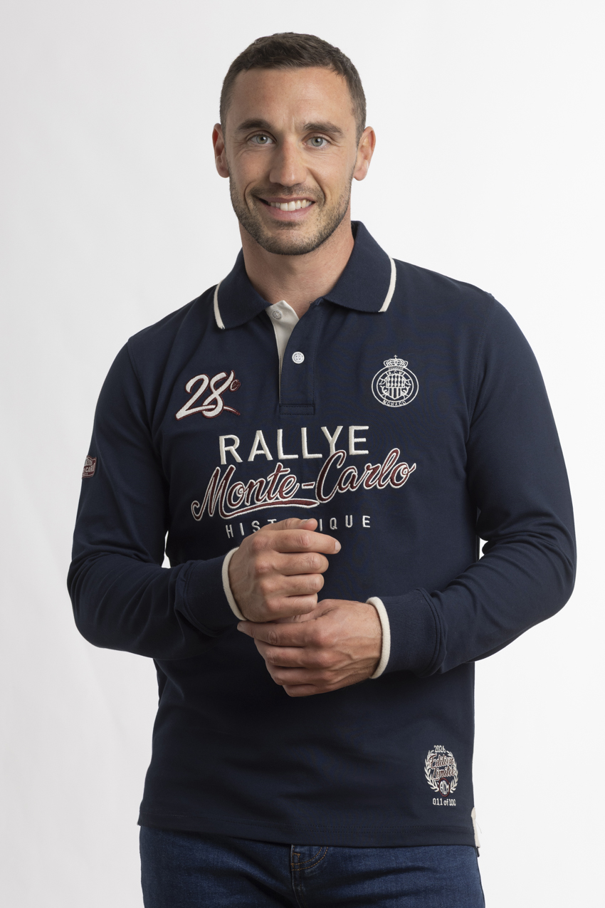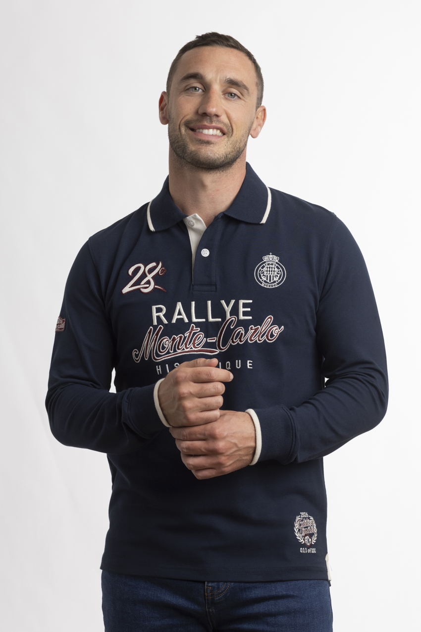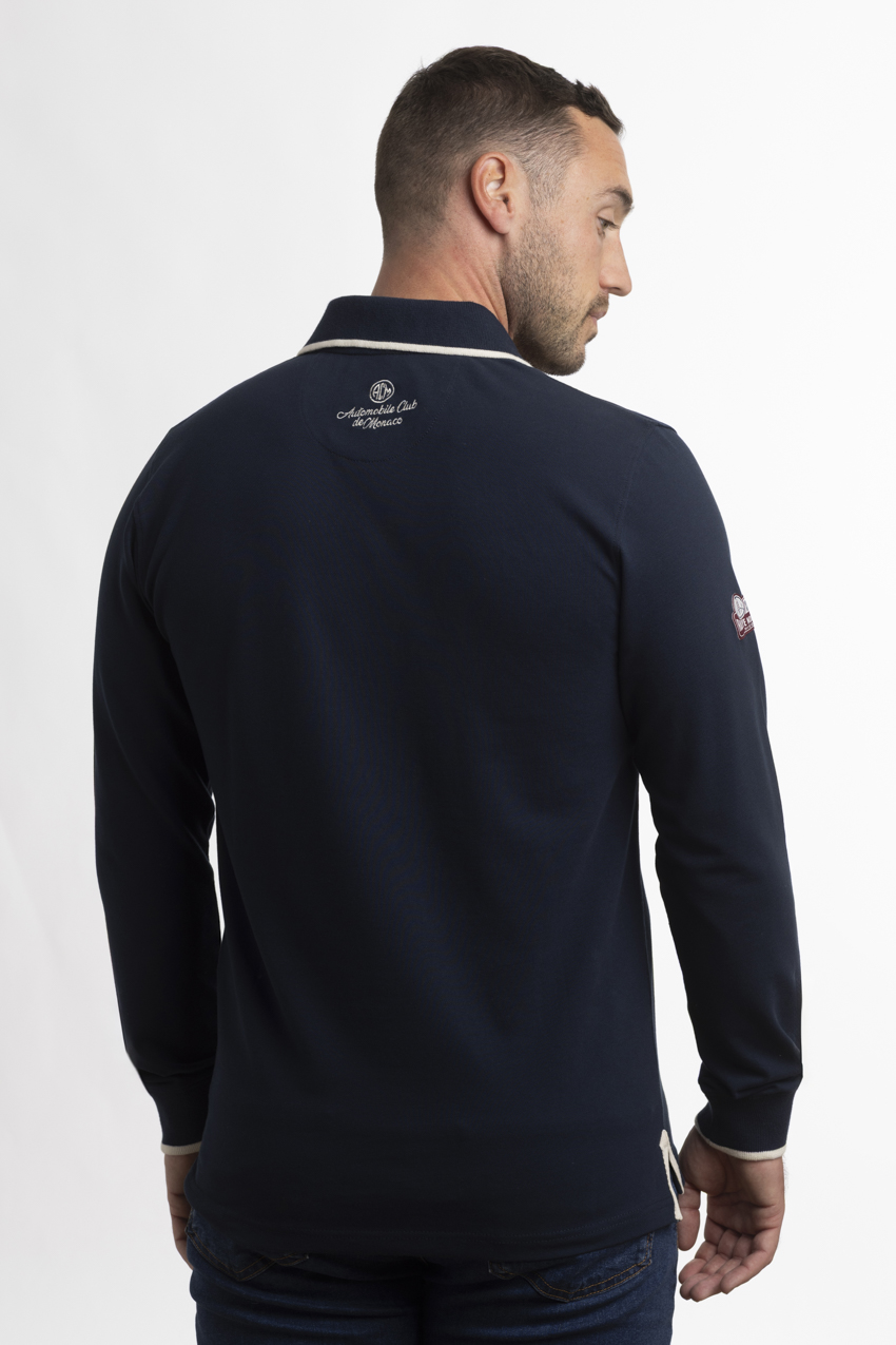 Polo bleu marine exclusif en coton orné de broderies de la 28e édition du Rallye Monte-Carlo Historique