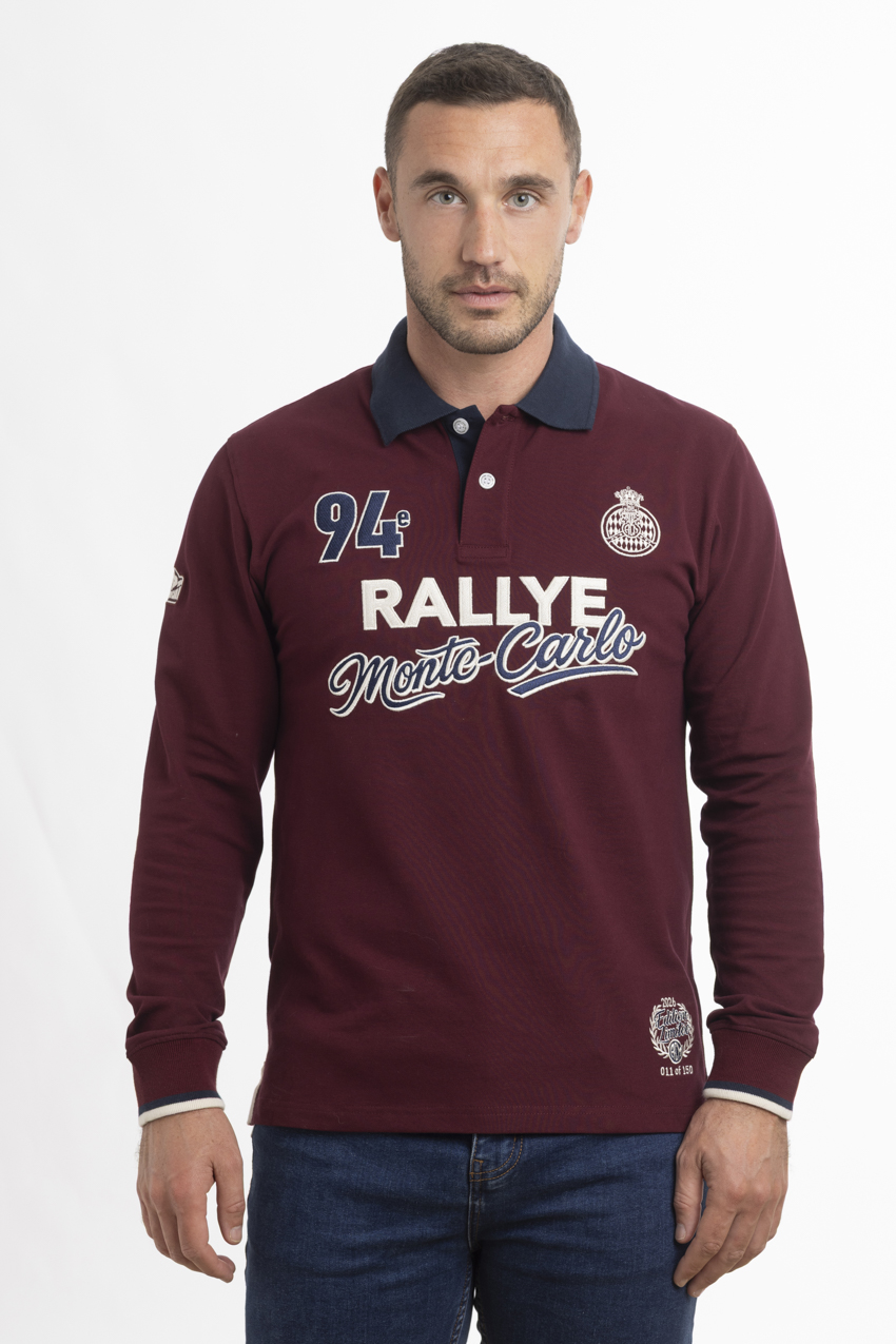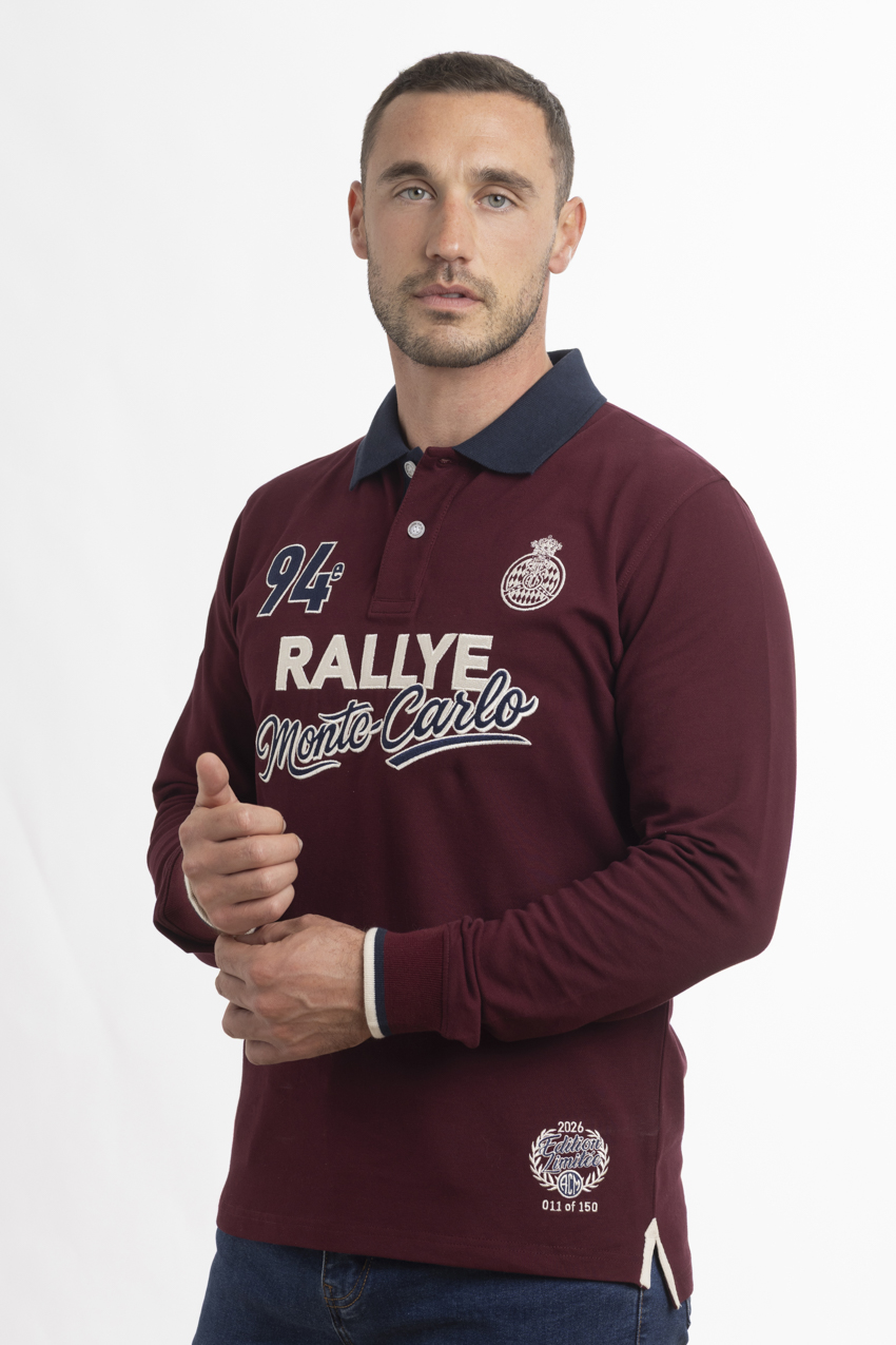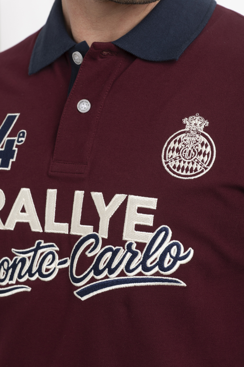 Polo bordeaux exclusif en coton orné de broderies de la 94e édition du Rallye de Monte-Carlo