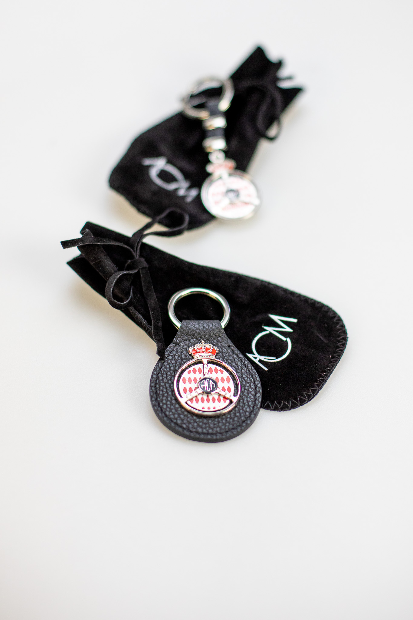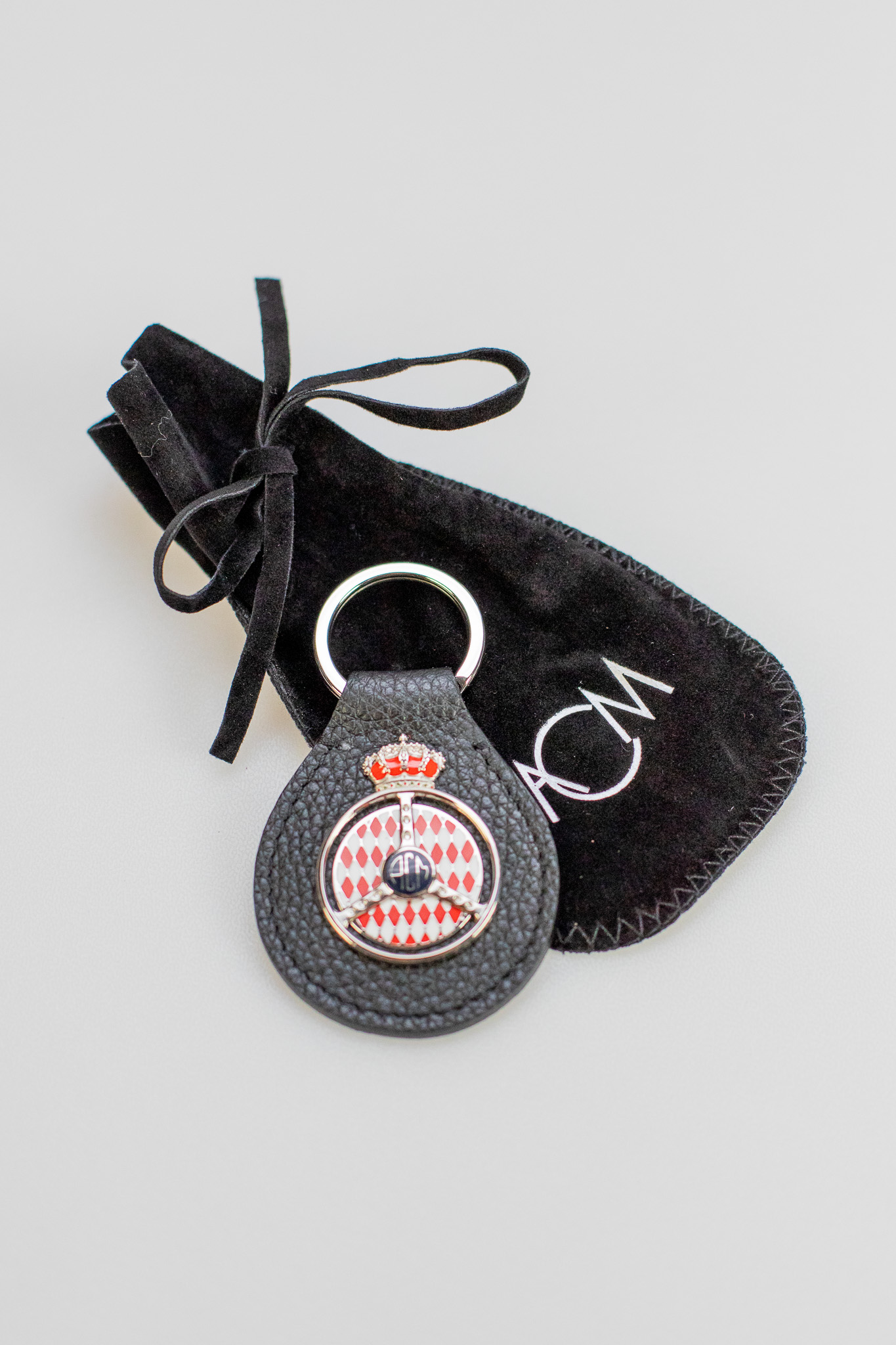 Ce porte-clés en cuir noir grainé incarne le prestige et l’élégance de l’Automobile Club de Monaco. Son médaillon argenté, finement émaillé aux couleurs traditionnelles de la Principauté, est subtilement mis en valeur par une monture travaillée et une couronne emblématique. Livré dans une pochette en suédine noire siglée ACM, il constitue un cadeau d’exception ou un accessoire haut de gamme pour les passionnés de sport automobile et de tradition monégasque.