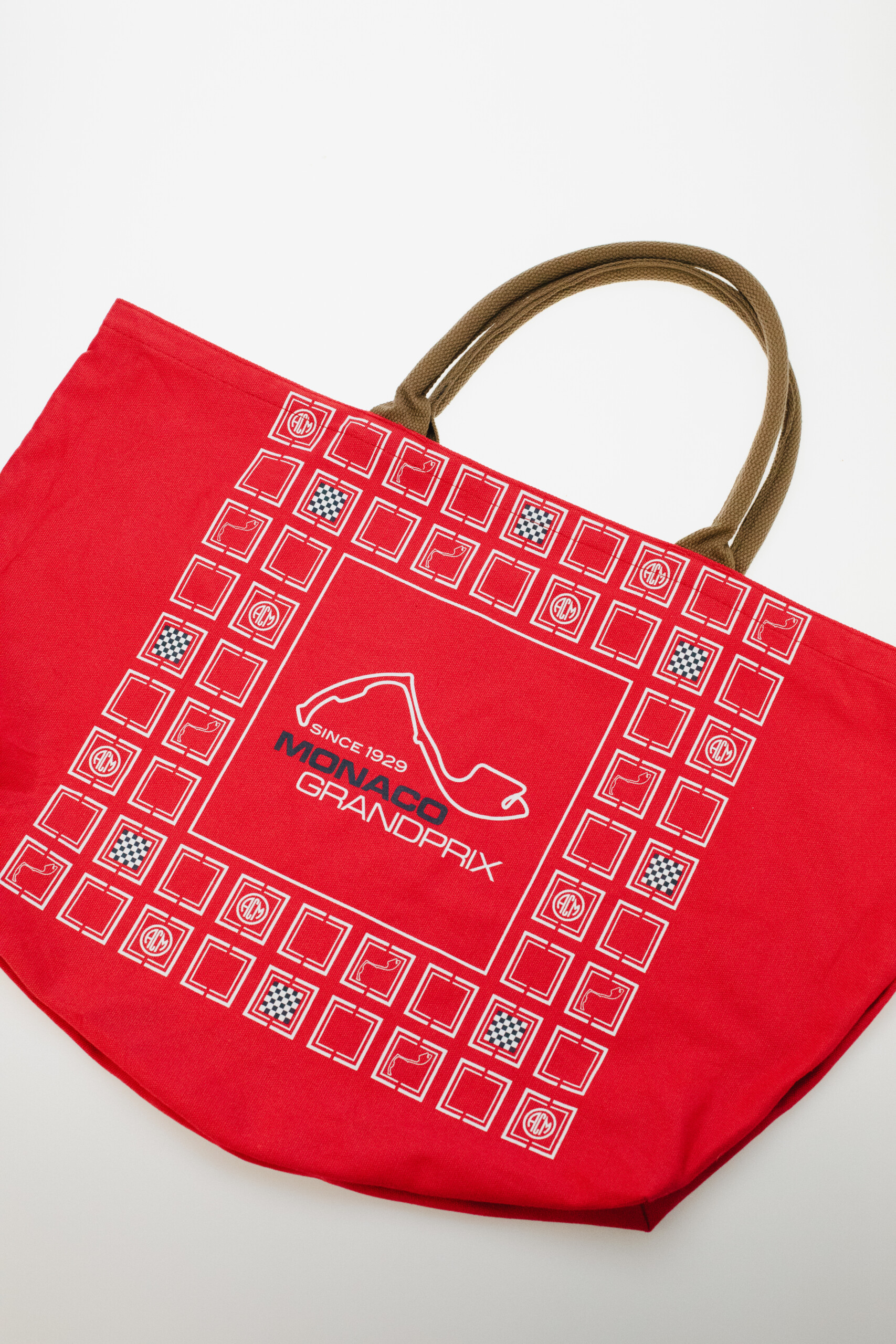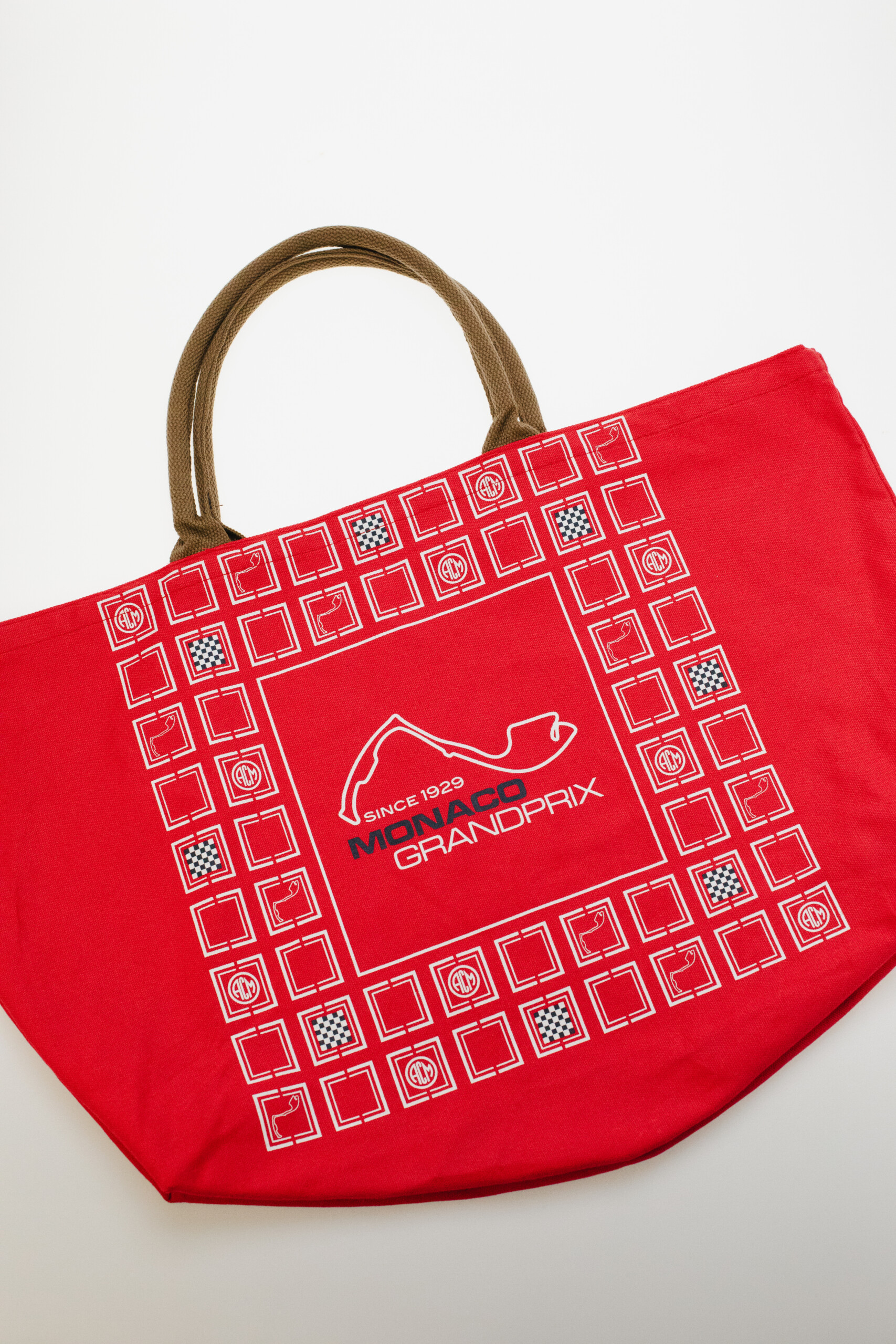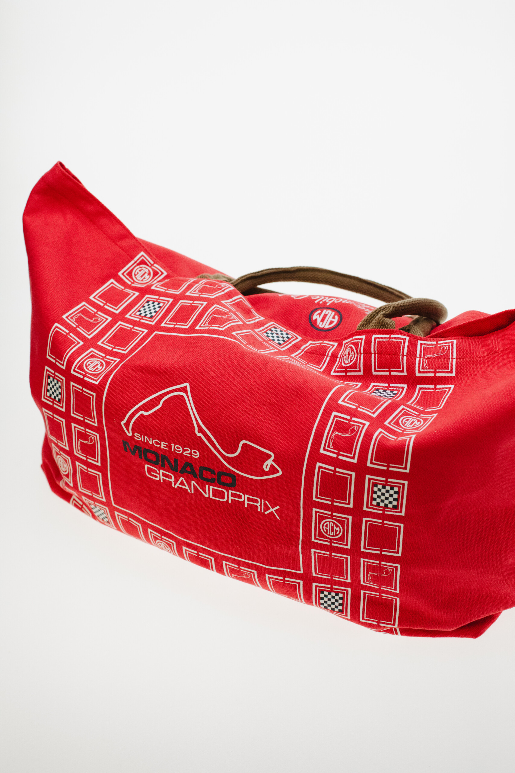 Fabriqué en toile rouge robuste, il présente un design graphique blanc et noir inspiré de l’univers de la course. Au centre, on retrouve le tracé emblématique du circuit de Monaco accompagné de l’inscription « Since 1929, MONACO GRAND PRIX ».